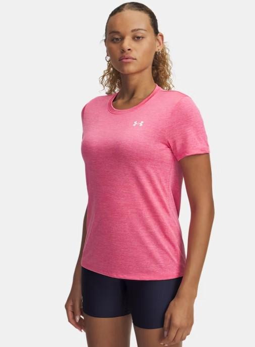Camiseta de entrenamiento de Under Armour para mujer Tech SS Twist en color rosa.