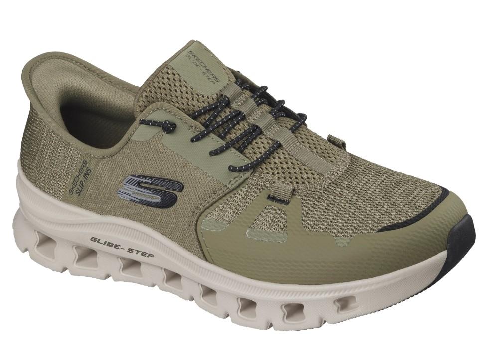 Calzado deportivo de Skechers para hombre Slip-Ins Glide Step Pro en color verde oliva.
