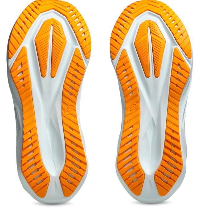 - El piso de los zapatos para correr de Asics Novablast 5 lleva piezas de caucho que garantizan un grip óptimo.