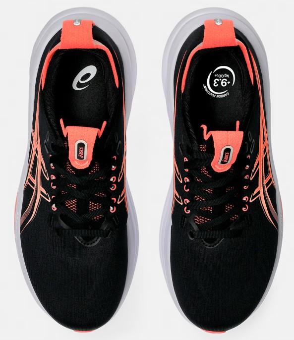 Calzado de running de Asics para mujer Gel-Nimbus 28 en color negro y rosa perla.