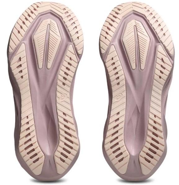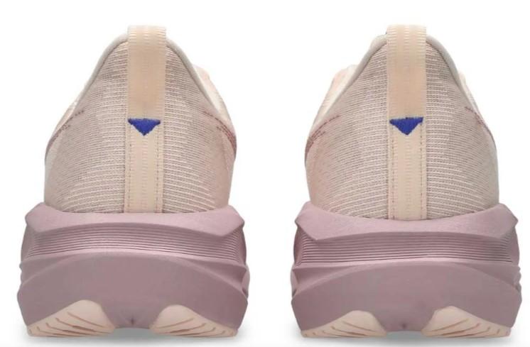 - El piso de los deportivos para correr de Asics Novablast 5 rosas lleva piezas de caucho que ofrecen agarre y tracción.