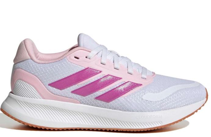 Calzado de running de Adidas para chica Runfalcon 5 J Blanco y rosa.