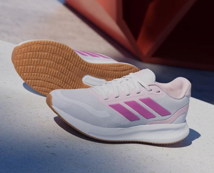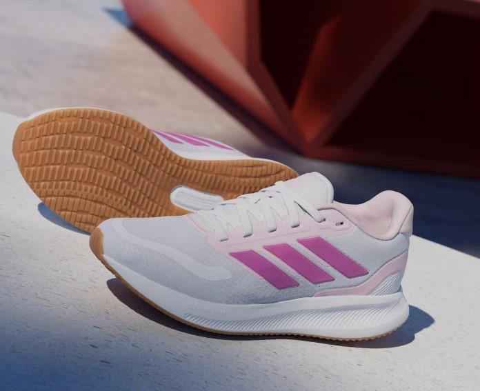 Las zapatillas de running de Adidas para chica Runfalcon 5 blanca y rosa son muy ligeras y cómodas.