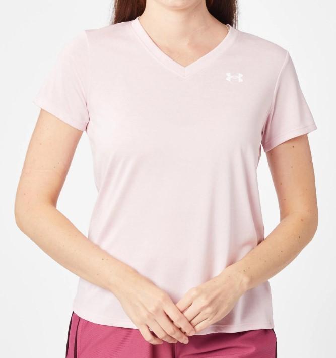 Camiseta de manga corta de Under Armour para mujer Tech SSV en color rosa claro.
