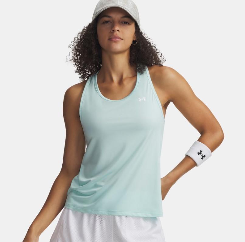 - La camiseta de tirantes de Under Armour Tech Knockout verde menta está compuesta de poliéster.