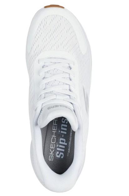 - La base de las deportivas blancas de Skechers para hombre Slip-Ins lleva la tecnología GO RUN, que amortigua el impacto.
