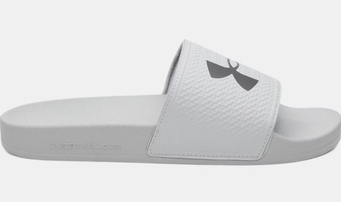 Las chanclas de pala de Under Armour para hombre UA ARMR Slides grises te permitirán andar cómodamente en verano.