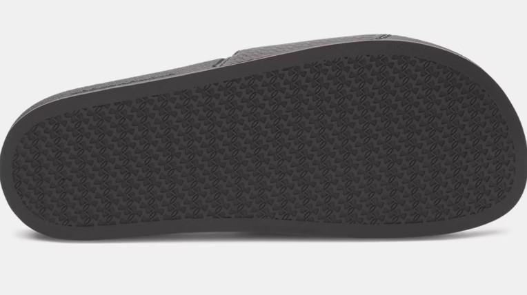 - La suela de estas chanclas para hombre de Under Armour negra y verde llevan patrón de agarre.
