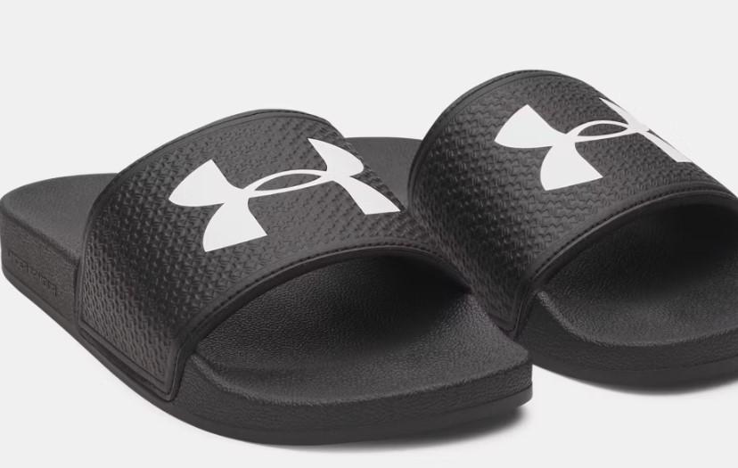 - Estas chanclas negras de Under Armour para mujer llevan patrón de tracción.