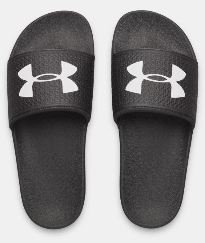 Chanclas de Under Armour para mujer UA ARMR Slides en color negro y blanco.