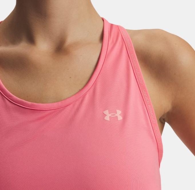- La camiseta de tirantes de Under Armour para mujer Tech Knockout rosa está fabricada con poliéster.
