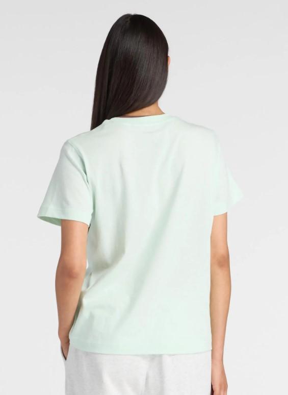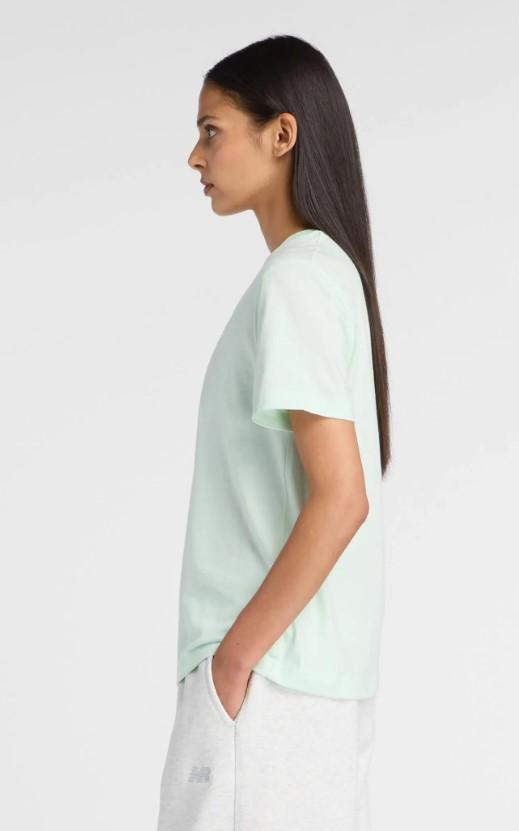 La camiseta de algodón de New Balance para mujer Sport Essentials verde es perfecta tanto para vestir como para entrenar.