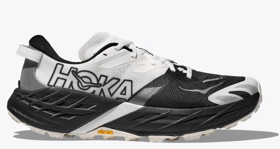 Calzado de trail running de Hoka One One para hombre Speedgoat 7 en color blanco y negro.