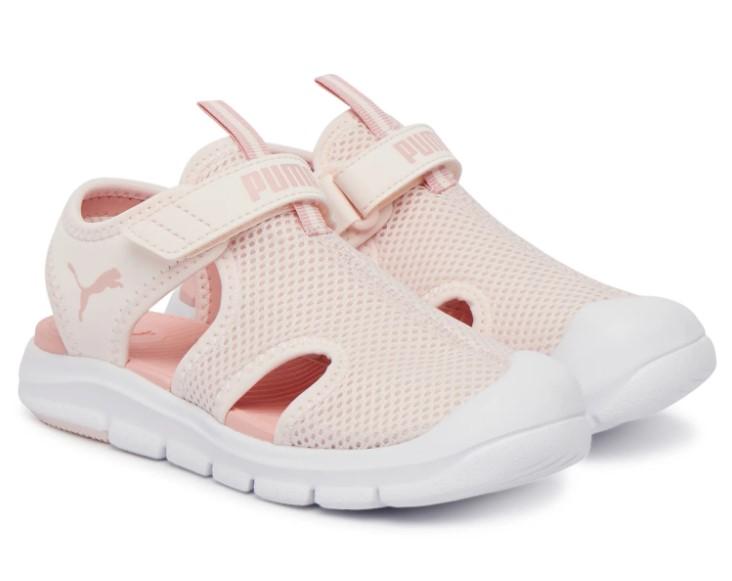 Sandalia cerrada de Puma para niñas Fun Racer Mesh en color rosa claro.