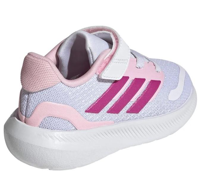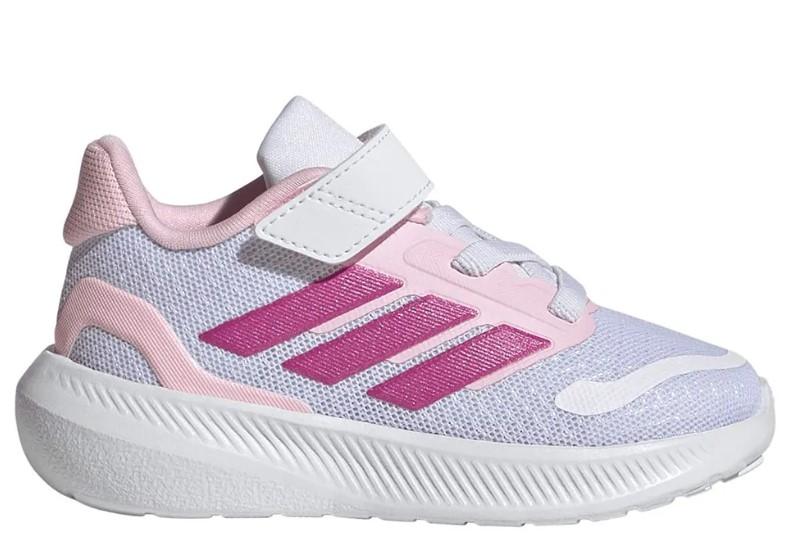 Calzado deportivo con velcro para niña pequeña de Adidas Runfalcon 5 en color blanco y rosa.
